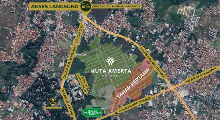 Di jantung Soreang, hanya 3 menit dari Gerbang Tol Soroja, memastikan akses super cepat dan mudah menuju pusat Kota Bandung.